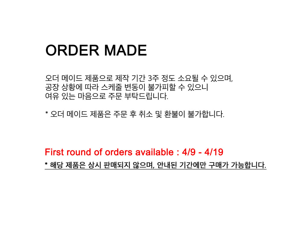 * 오더메이드 제품은 교환 및 환불이 불가합니다.